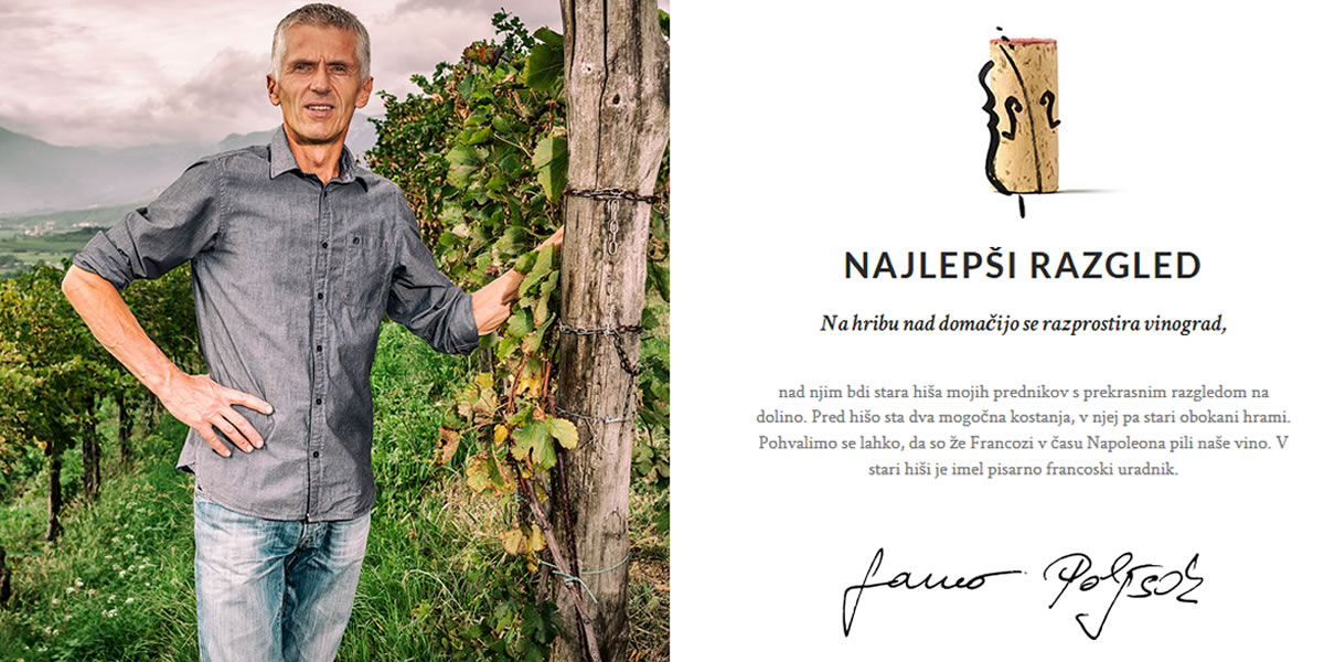 The Poljšak family has a long tradition of winegrowing as their estate has been growing grapes for about two centuries. They began bottling their own produce in 1991. Samuel Poljšak, the current owner and cellar master, cultivates five hectares (13 acres) of vineyards in Gradišče at Vipava, one of the best sites in Vipava Valley. This valley is one of the countries' most prominent wine areas with good soil, sun exposure and high winds, reflected in the taste of Vipava Valley wines.